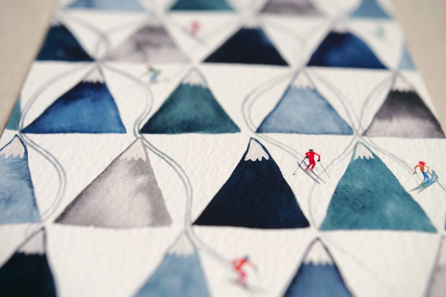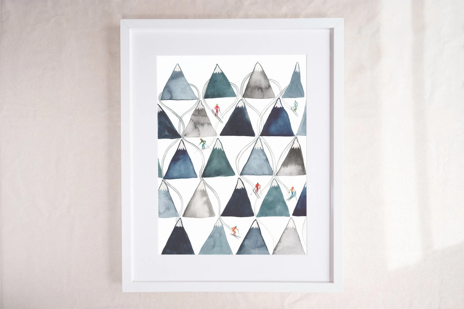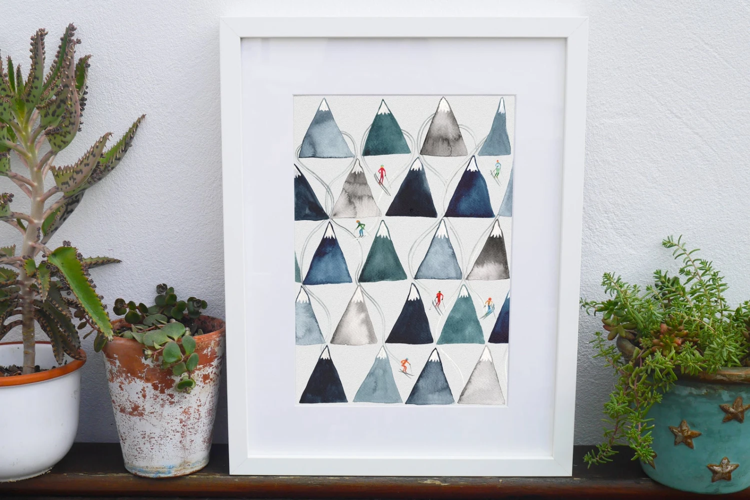 This is a wonderful limited edition Alpine Ski Mountain print by Hattie Buckwell. Hattie is an artist working in Bristol, England. She primarily works in watercolour and this is a print of her original watercolour painting Ski Mountain. Perfect for any skiing enthusiasts.