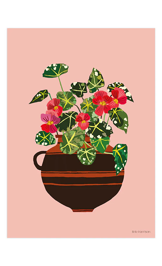This beautiful Begonia art print comes from designer and illustrator Brie Harrison. Her work expresses her spirit for pattern, and colour. She draws great inspiration from the botanical world and the intricacies of nature around her.