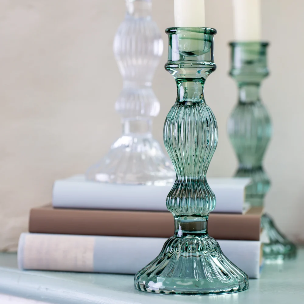 Bella Glass Candlestick Green