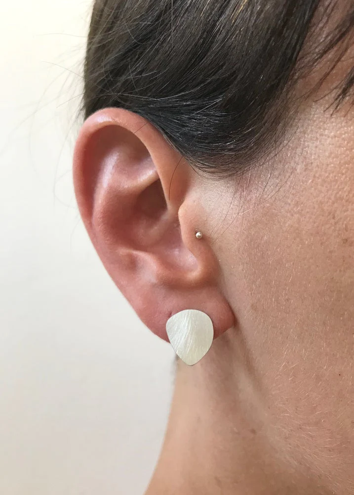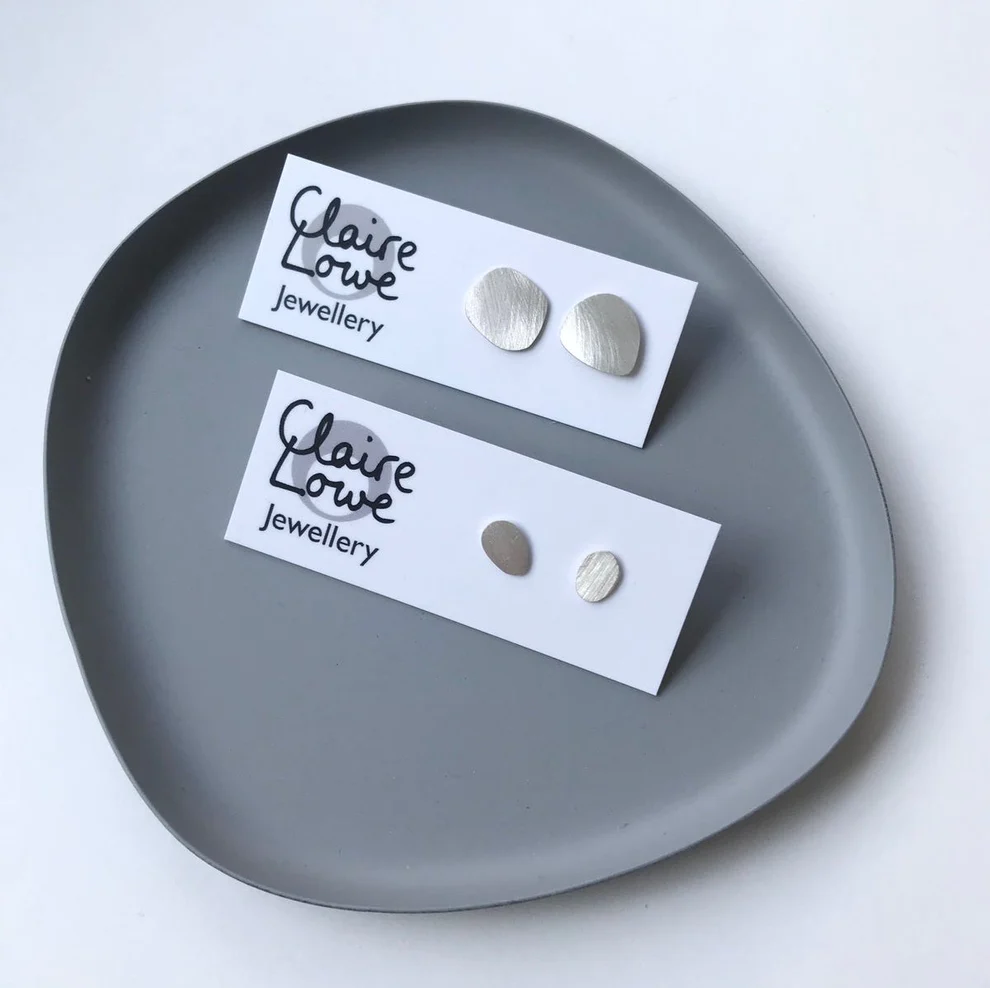 These small Brushed Silver Pebble Studs are handmade by Devon based contemporary jewellery designer Claire Lowe in her garden studio.