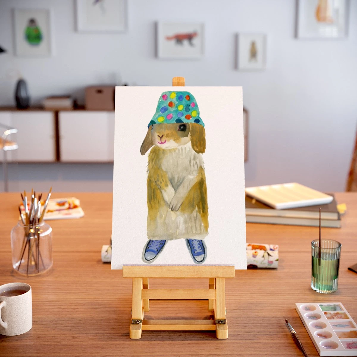 This lovely limited edition Bucket Hat Bunny print is by independent artist Rosie Webb. Rosie is a watercolour artist who creates her paintings in a loose and expressive way that incorporates a lightness of touch with humour. The result is lovely quirky and charming animal prints that are perfect for brightening up the home.