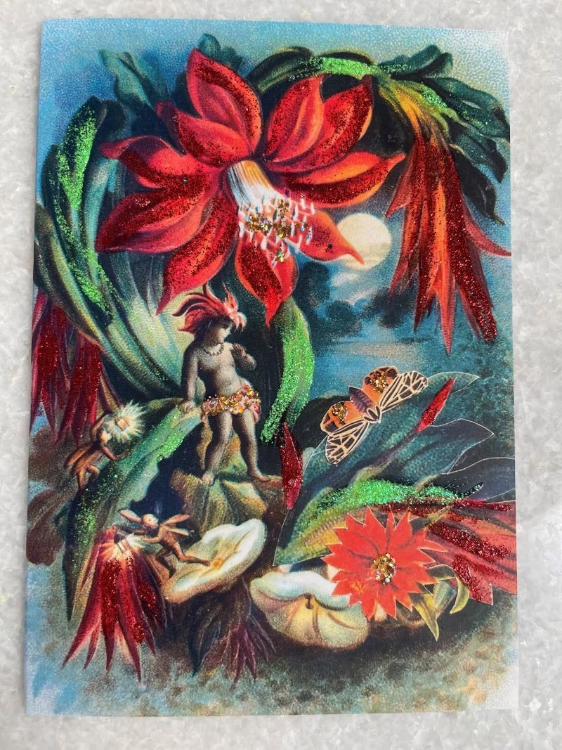 Cactus Fairy greetings card by talented local artist Diana Wilson. Diana creates beautifully coloured collage which is then hand-glittered.