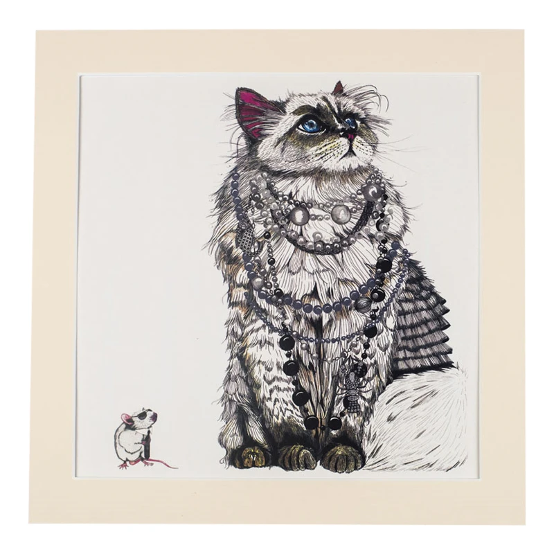 This Cat & Mouse Art Print is a quirky hand printed illustration by Charley Rabbit. Professionally mounted and ready to frame. A perfect gift or stunning addition to any room.