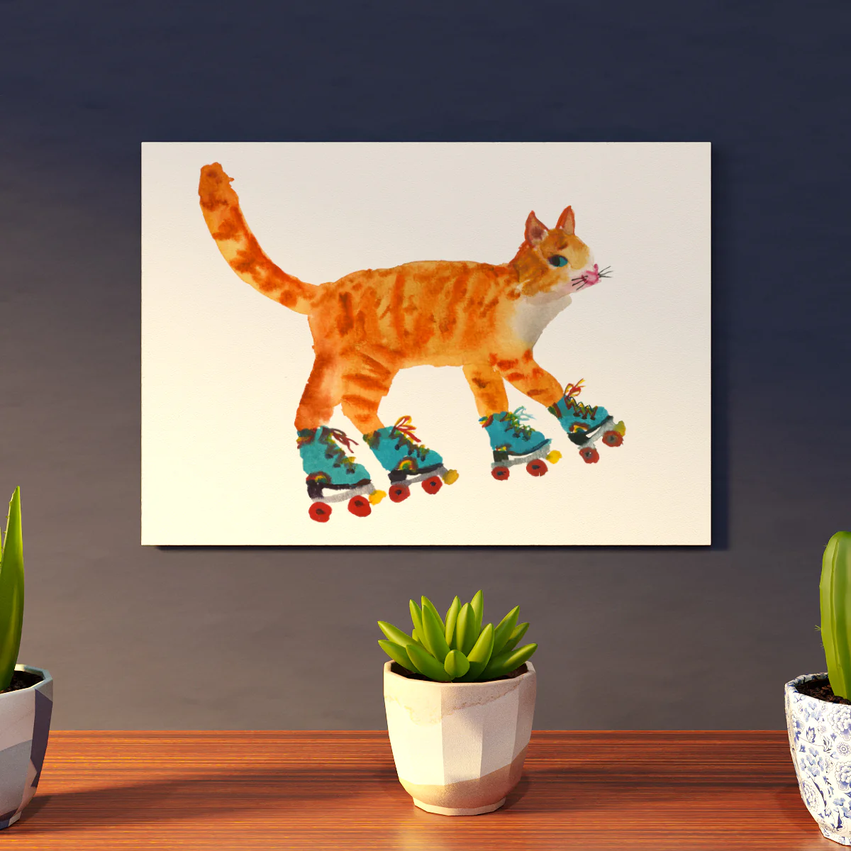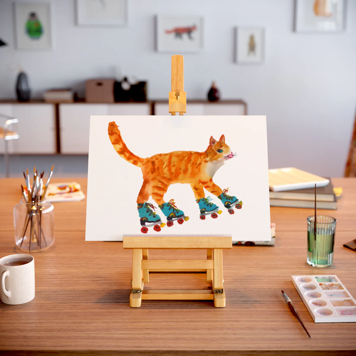 This lovely limited edition Cat on Roller Skates A4 Art Print is by independent artist Rosie Webb. Rosie is a watercolour artist that creates her paintings in a loose and expressive way that incorporates a lightness of touch with humour. The result is lovely quirky and charming animal prints that are perfect for brightening up the home.