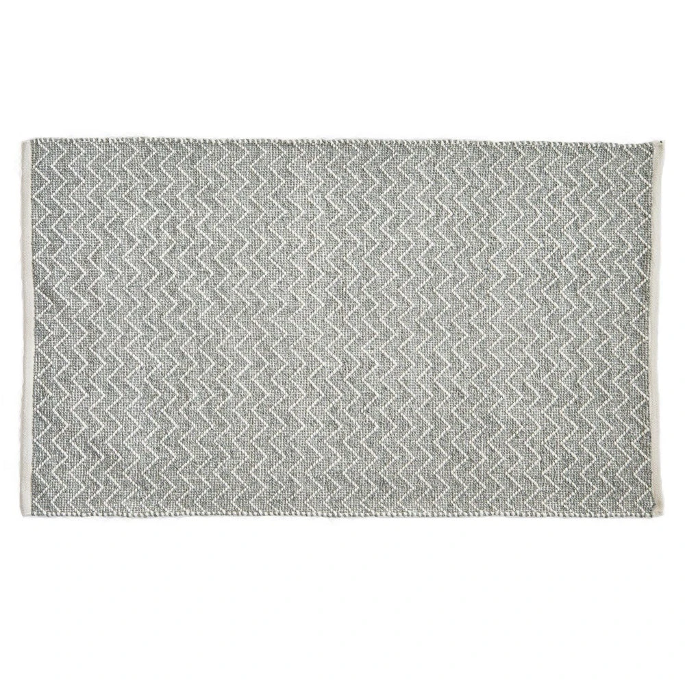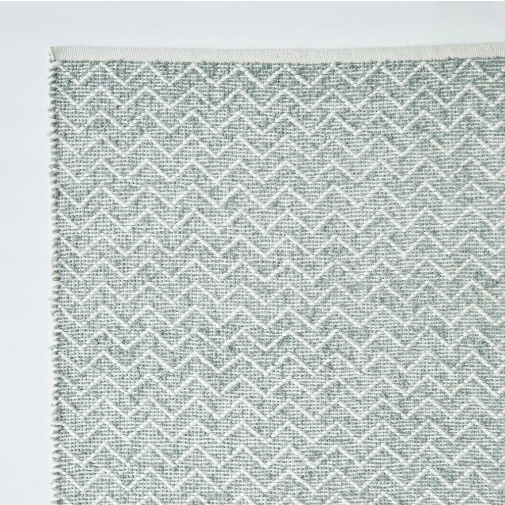 This gorgeous Scandi-inspired chenille rug features a soft open weave with white zig zag stripes. We also stock the chenille rug in Chinchilla and chenille rug in Gooseberry. These rugs are hand-woven by skilled craftsmen and women in weaving houses. These houses are committed to employing skilled adults who are paid fairly and enjoy comfortable working conditions.