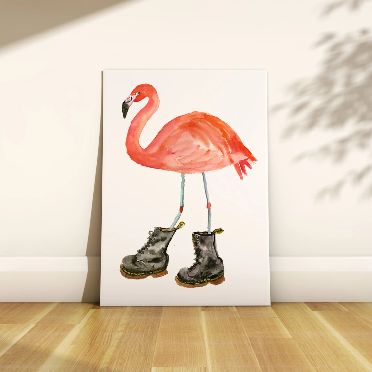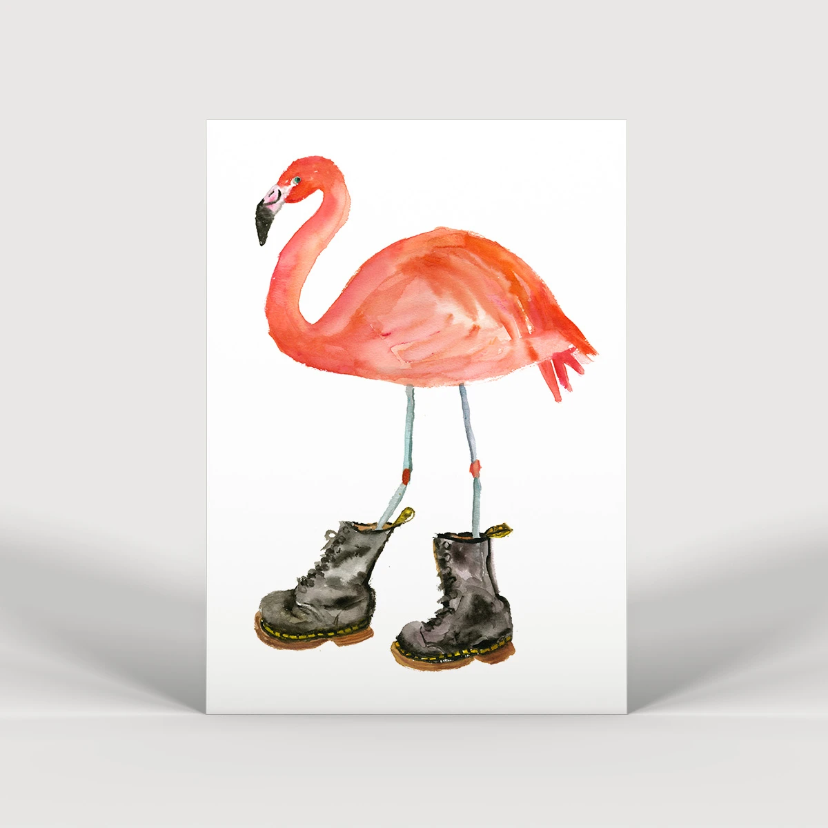 This lovely Cyber Flamingo in Black Boots fine art giclee print is by independent artist Rosie Webb. Rosie is a watercolour artist that creates her paintings in a loose and expressive way that incorporates a lightness of touch with humour. The result is lovely quirky and charming animal prints that are perfect for brightening up the home.