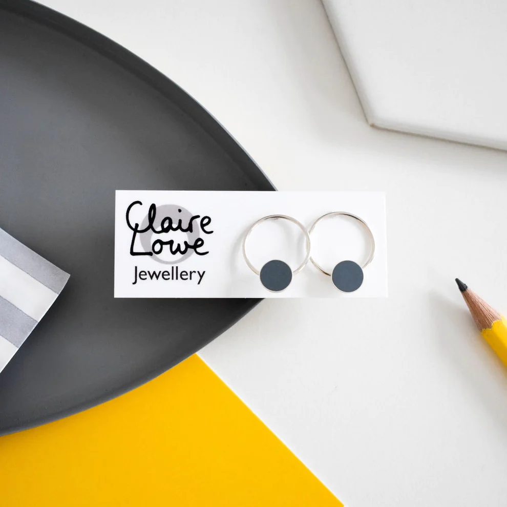 These grey resin and oxidised silver stud earrings are handmade by Devon based contemporary jewellery designer Claire Lowe in her garden studio.