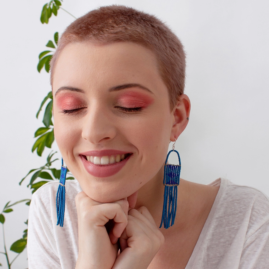 Inspired by traditional African bead work, the Melako earrings feature a striking diamond pattern and long tassels.