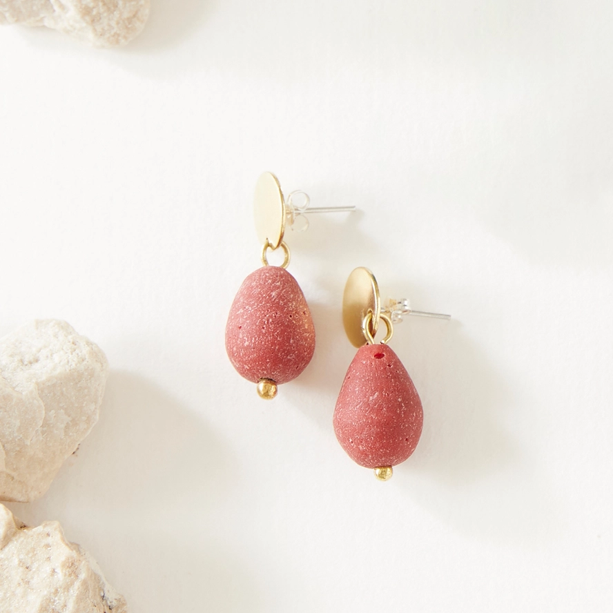 From Just Trade, these Egyptian Red Stud Earrings are handmade. The beads are skilfully created by melting down pieces of waste glass and formed by hand using specialist tools. The recycled beads are combined with handcrafted brass components. They have been crafted by skilled makers in East Java, Indonesia, who are paid a fair wage for their work. Each bead is unique, created using distinctive processes that have been developed over many years.
