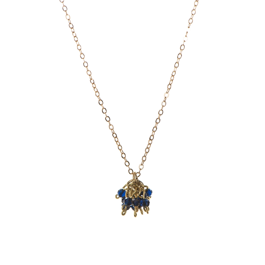 Made from glass crystal beads with brass wire and gold plated brass chain.