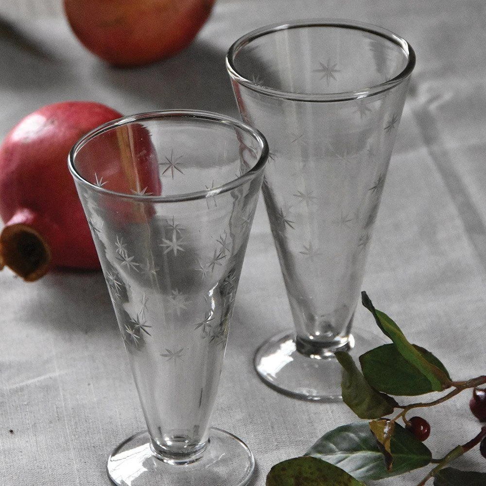 These beautiful vintage style Prosecco glasses from Grand Illusions are decorated with etched stars and will add a bit of fun to a festive occasion. Perfect for toasting family and friends. Detailed with delicately cut stars, each traditional glass has been hand-crafted by skilled artisans in India from 100% recycled materials. Perfect for those with a love of vintage-inspired glassware, they looks splendidly stylish filled to the brim with celebratory bubbles. Grand Illusions’ glassware is handmade.