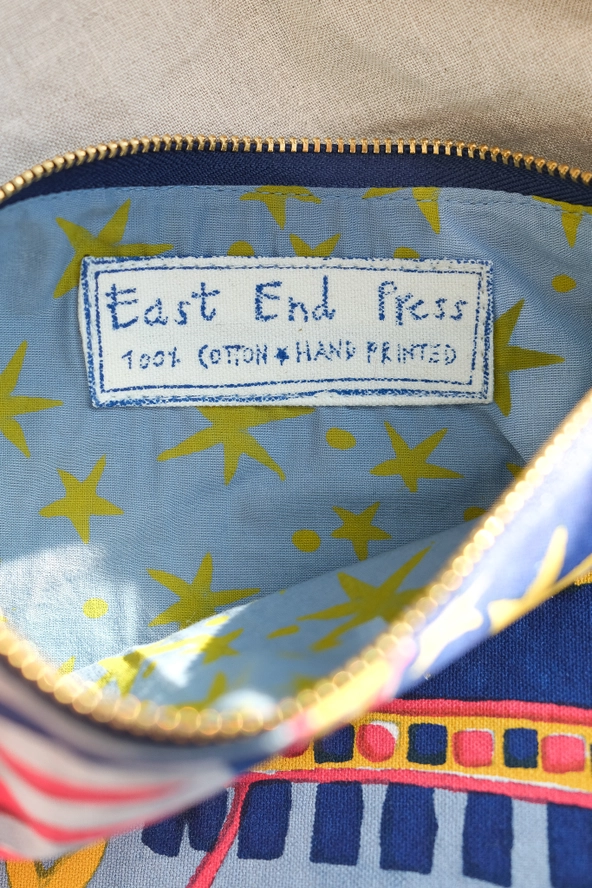 This lovely cotton fabric case in the shape of an elephant has been printed by hand from carved wooden blocks, this pouch is perfect storage for all your bits and bobs, art supplies or tablet. With a patterned cotton lining and sturdy brass zip, this pouch is beautifully made and large enough to be useful for a variety of objects.