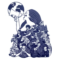 Handmade linocut print. Dimensions: 29.7 cm by 42cm Printed on recycled paper using Caligo oil-based relief ink. Printed on finest recycled paper with oil-based ink. A limited-edition run of 50.