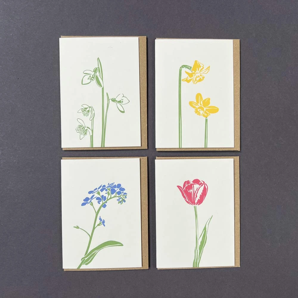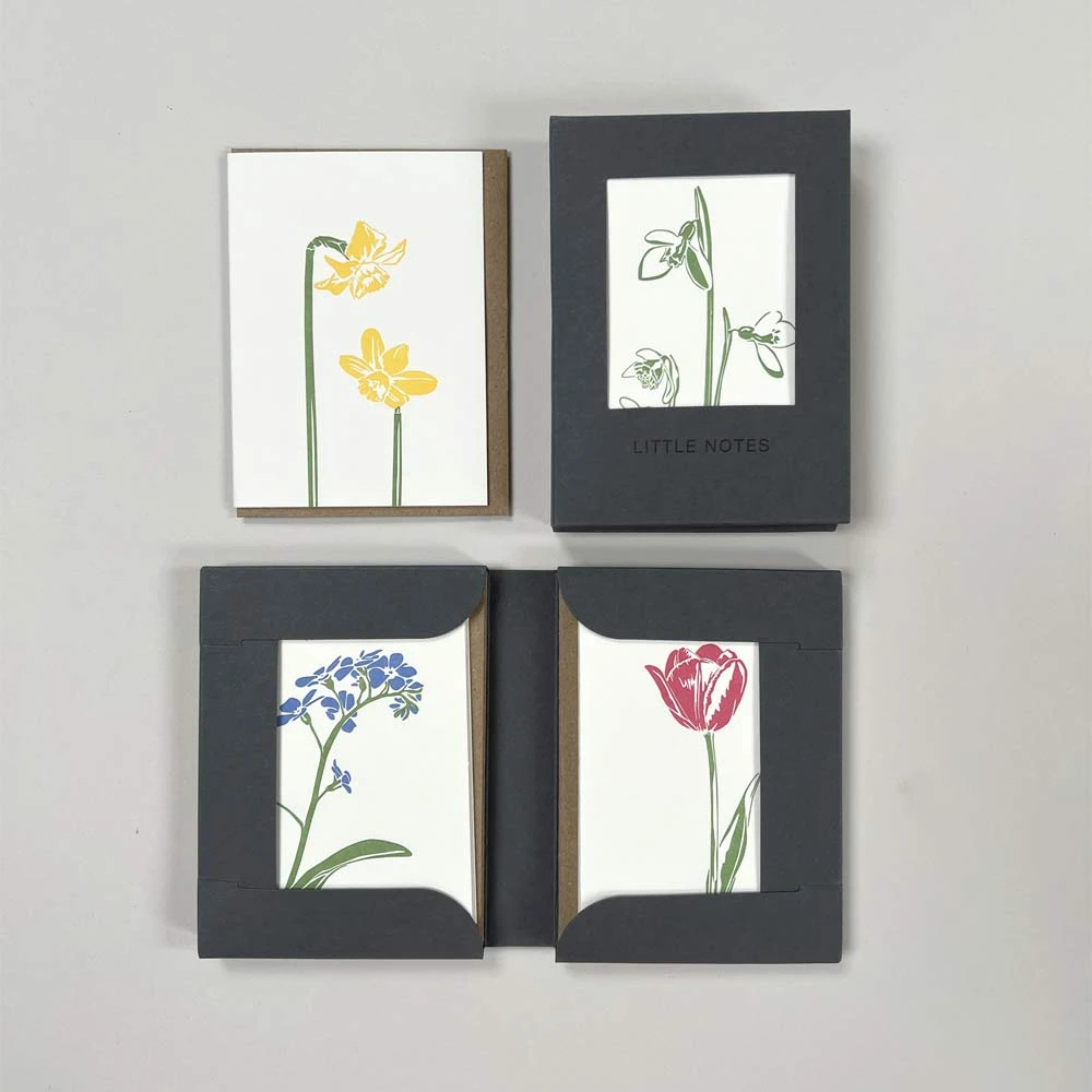 This Flora boxed card set is part of Penguin Ink’s Little Notes collection. The boxed set includes two of each of their four flora little note designs, therefore it includes two Tulips, Forget-me-not, snowdrop, and Daffodil cards.
