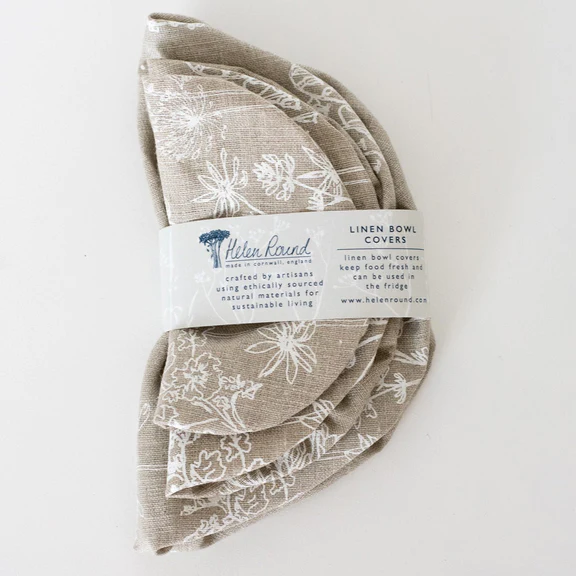 This set of three linen Reusable Bowl Covers from Helen Round in her distinctive Garden Design keep food fresh and look beautiful in your kitchen. Pop them in the fridge or great for food that can be left on the worktop. They are designed to be used again and again.
