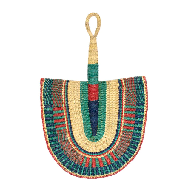 The beautiful African fan is an impressive display of the immense time and skill put into the creation of this handwoven piece.