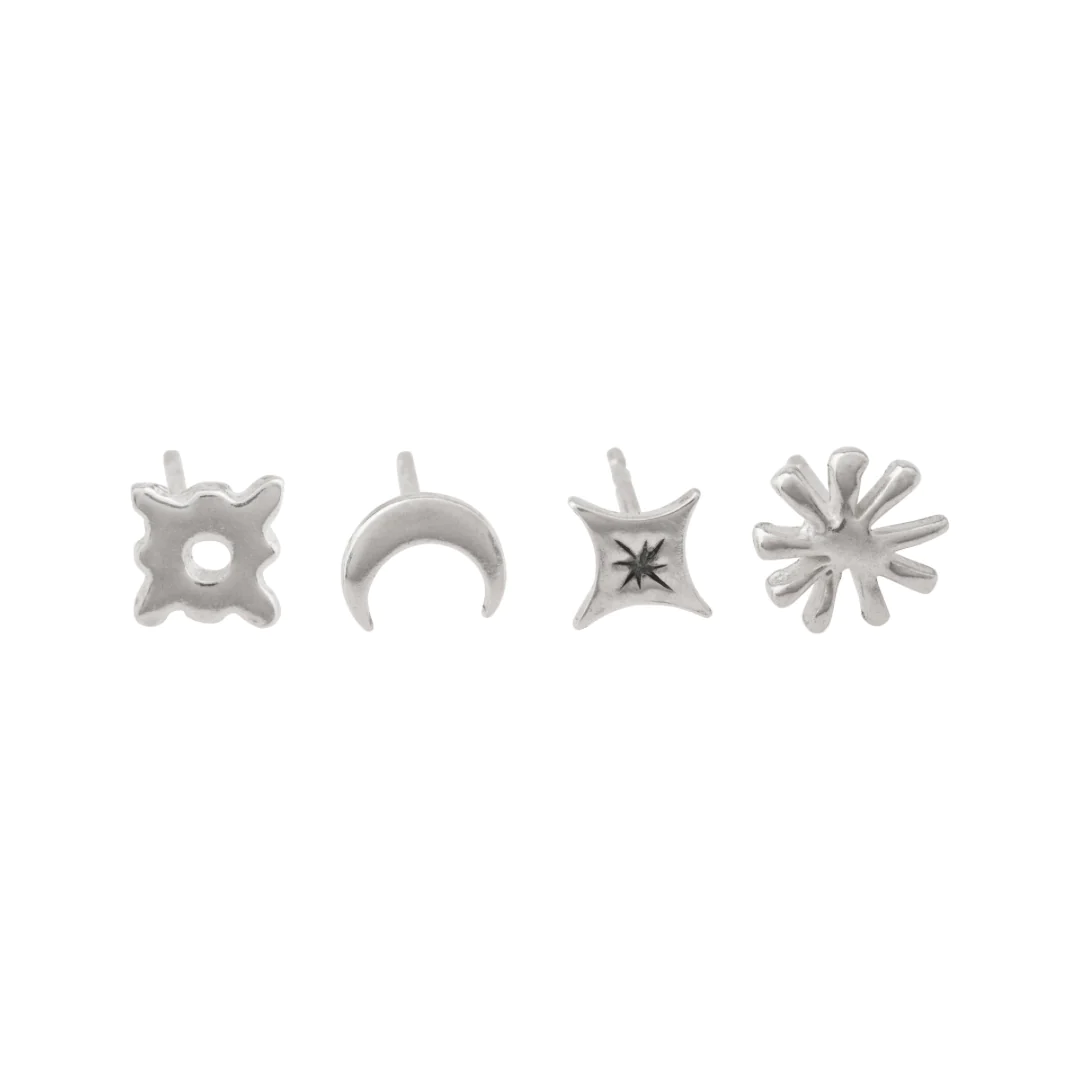 This pack of 4 recycled silver studs from Lima-Lima are made from recycled silver and are designed to be layered or worn as mis matched pairs