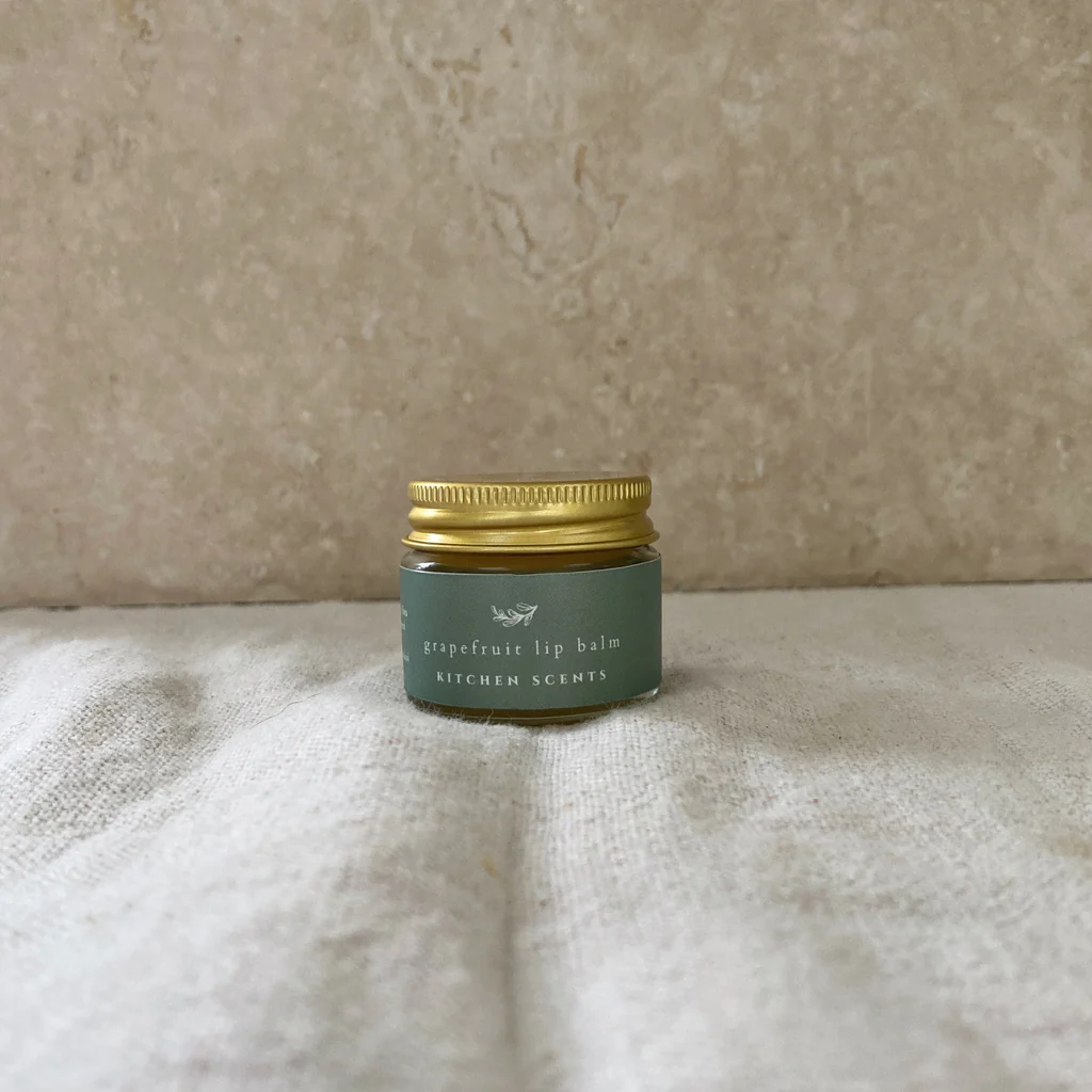 This Grapefuit lip balm from Kitchen Scents is made with simple good-for-you ingredients to soothe and protect your lips.