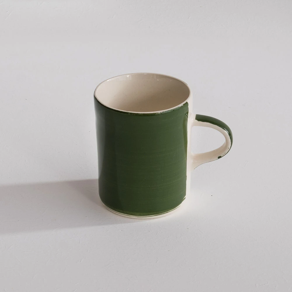 Here is the moss green demi mug from Musango. These beautiful hand-painted and hand-finished ceramic mugs are produced in Portugal. They have a lovely contemporary look and a tactile feel that gives them a real charm. They are a pleasure to drink from. We stock a range of colours, shapes and patterns – it’s difficult to decide whether to mix them up or go for a matching set!