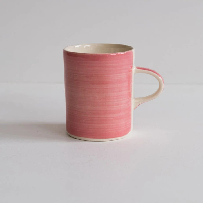 This beautiful hand-painted and hand-finished rose demi ceramic mug from Musango has a plain colour wash and is produced in Portugal. They have a lovely contemporary look and a tactile feel that gives them a real charm. They are a pleasure to drink from!