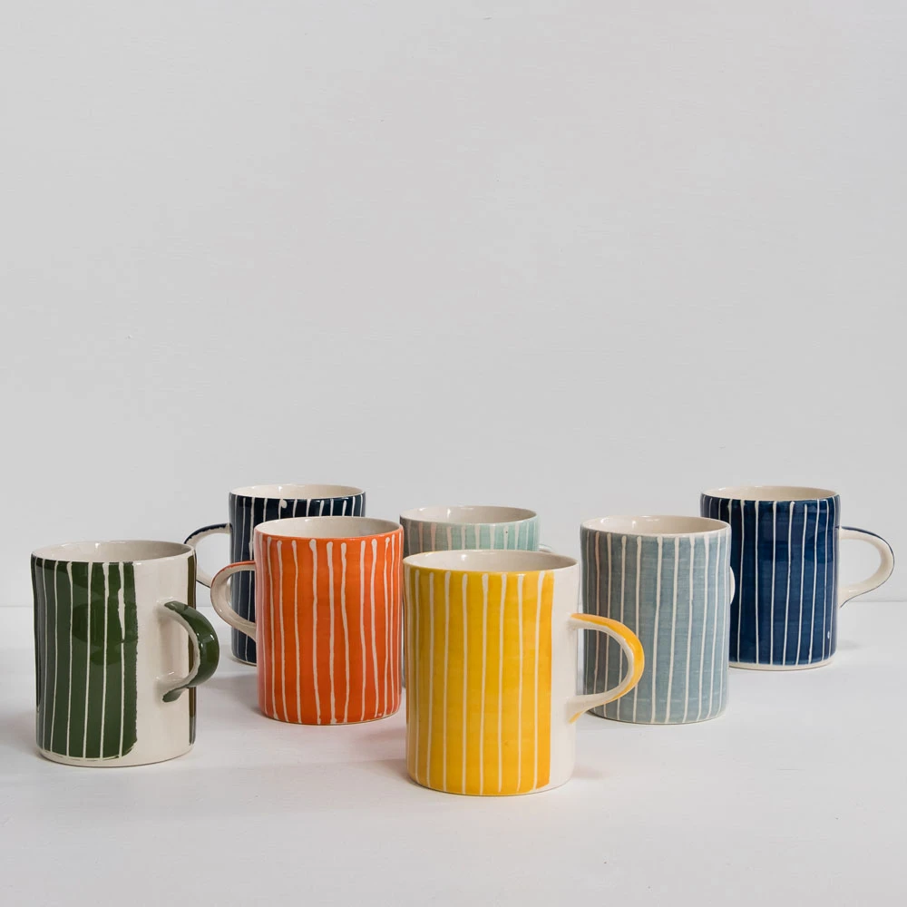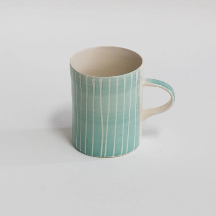 This beautiful hand-painted and hand-finished Sgraffito Stripe Demi Mug is in a lovely fresh-feeling mint colour. The mugs are produced by Musango in Portugal. They have a lovely contemporary look and a tactile feel that gives them a real charm. They are a pleasure to drink from!