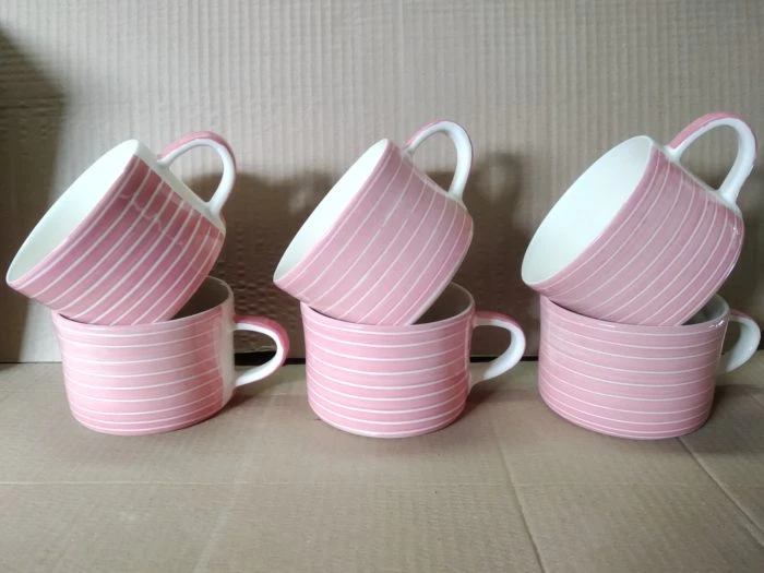 These beautiful hand-painted and hand-finished Sgraffito Wide ceramic mugs with their colourful stripe are from Musango. They are produced in Portugal. They have a lovely contemporary look and a tactile feel that gives them a real charm. They are a pleasure to drink from! Also available in a plain wash finish.