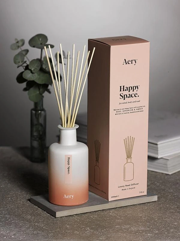 This Happy Space Aromatherapy Diffuser from Aery Living will soothe your senses and help you create your own inner peace with its blend of Rose, Geranium and Amber with subtle tones of Jasmine, Sandalwood & Cedar.