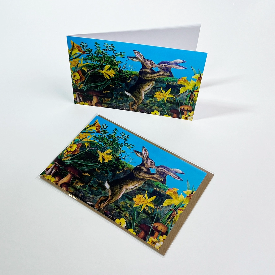 This gorgeous Hares greeting card is by talented local artist Diana Wilson. Diana creates beautifully coloured collages. This one makes an ideal Easter or Spring card.