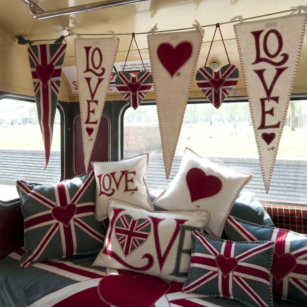 You might also like Jan Constantine’s red wool love cushion.