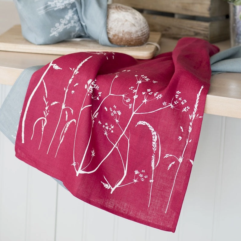 This linen tea towel from Helen Round is printed with her distinctive Hedgerow Design They are designed to be used again and again.
