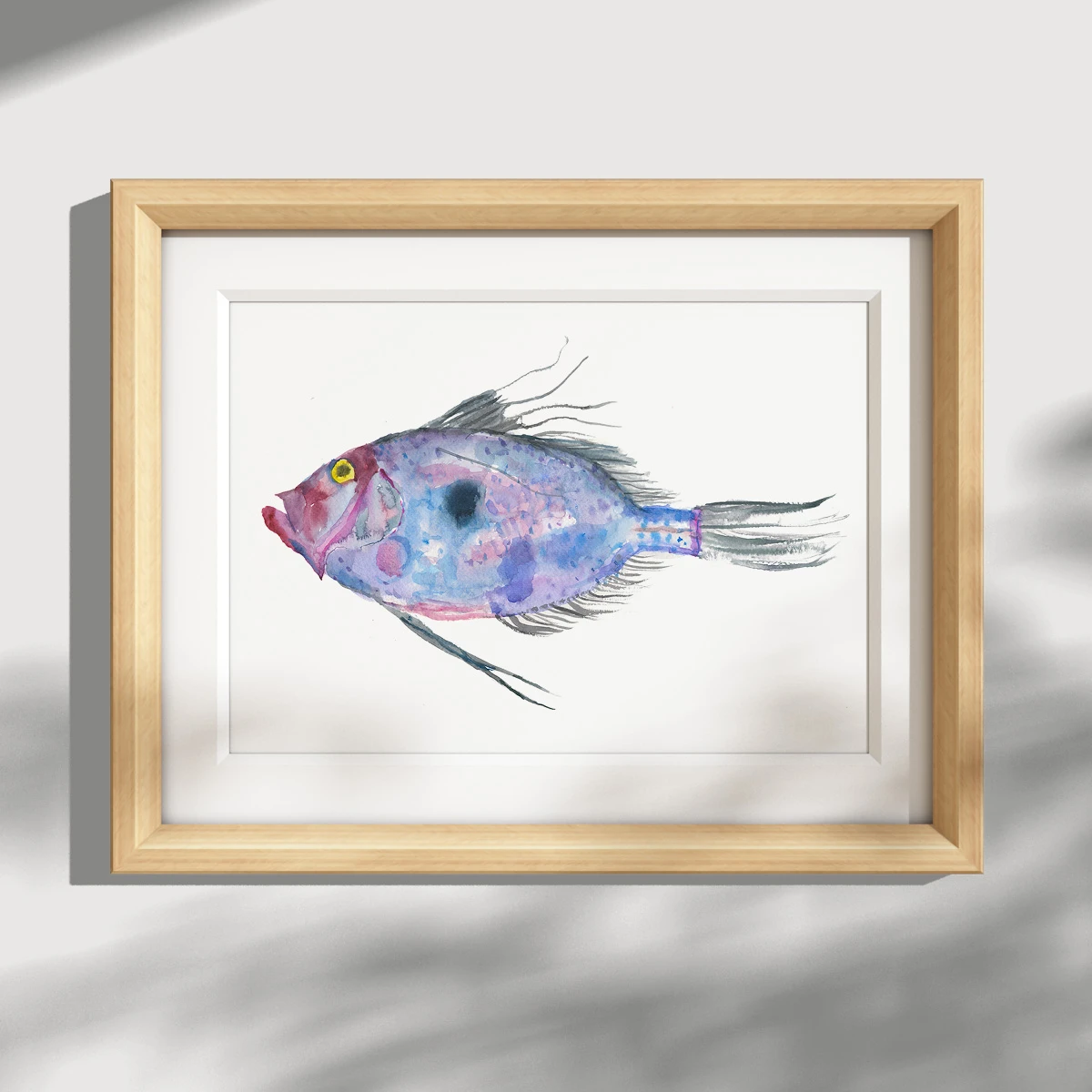 This lovely limited edition John Dory art print is by independent artist Rosie Webb. Rosie is a watercolour artist that creates her paintings in a loose and expressive way that incorporates a lightness of touch with humour. The result is lovely quirky and charming animal prints that are perfect for brightening up the home.
