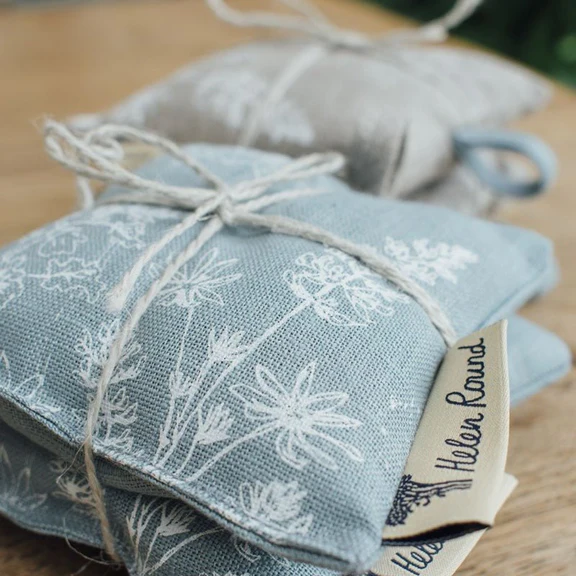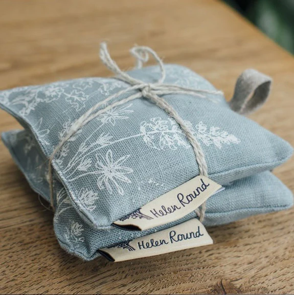 A set of two beautiful linen lavender bags by Helen Round hand printed with the Garden Design.