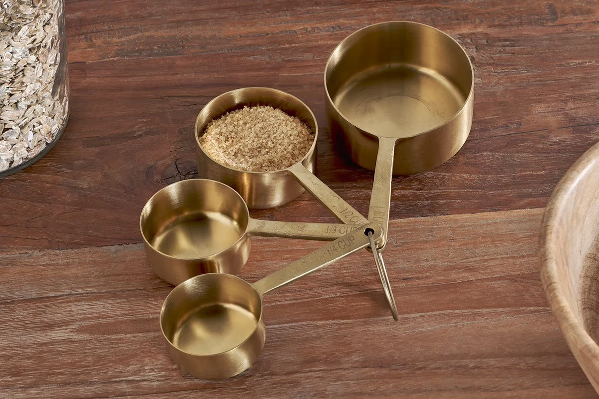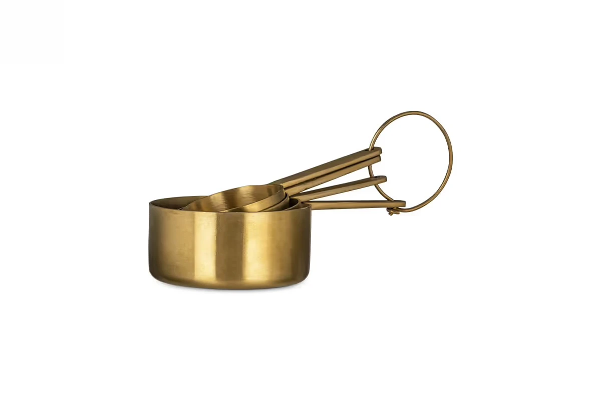 These handy Mane measuring cups in brushed gold from Nkuku are both functional and attractive, adding a touch of style to a kitchen cabinet.