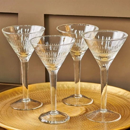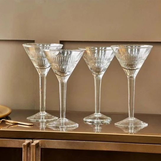 The elegant design of the Mila cocktail glasses from Nkuku is given an added air of sophistication, by its graceful contours and stylish etched pattern.