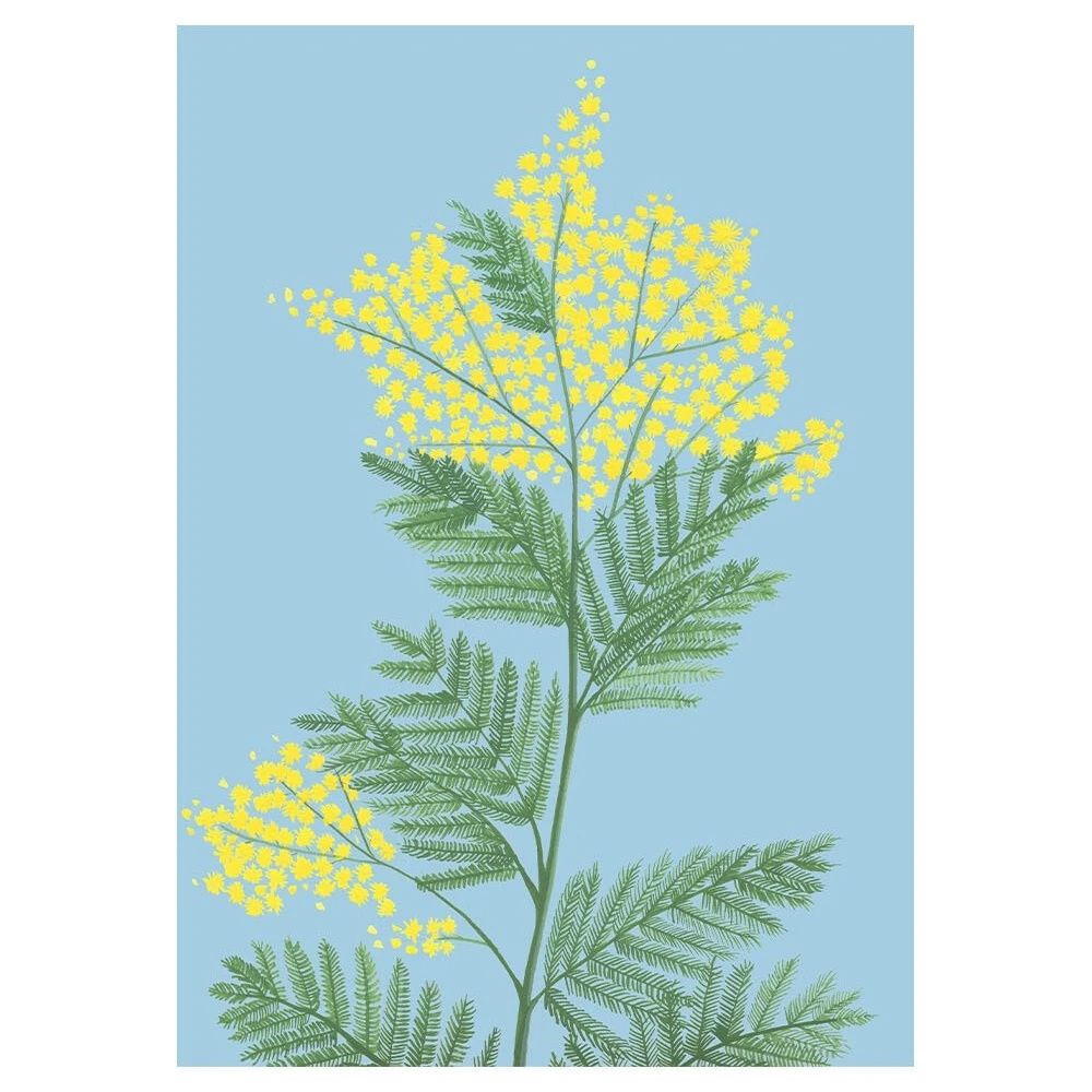 This Mimosa giclee print from Stengun Drawings on a pale blue background makes for an eye catching and striking art print. The lovely yellow flowers and green foliage makes this a lovely botanical print to brighten any space in your home.