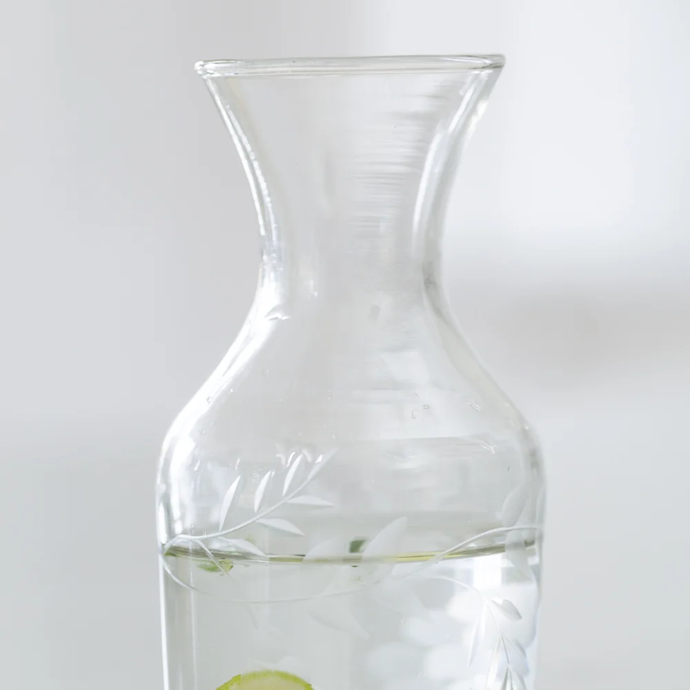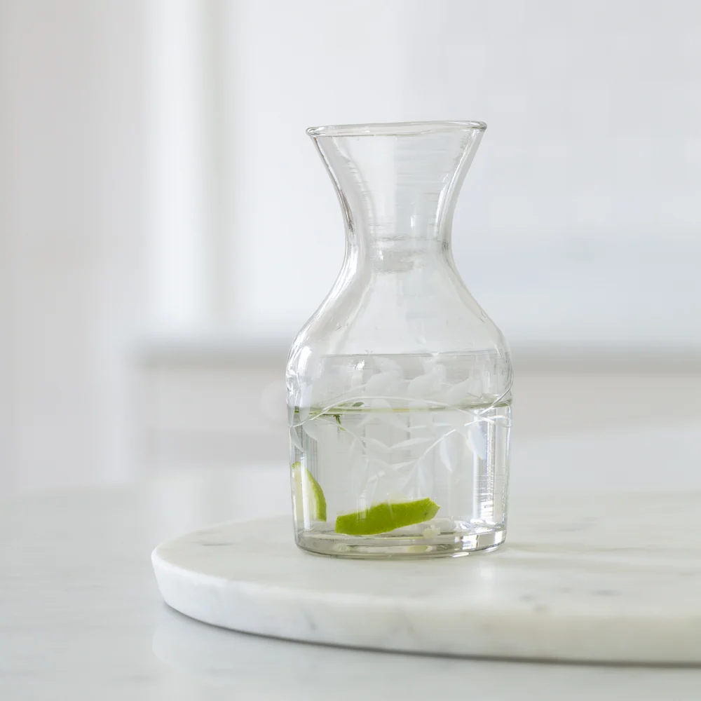 An elegant rambling vine etched design on a classically shaped mini carafe, the ideal vessel to decorate any table.