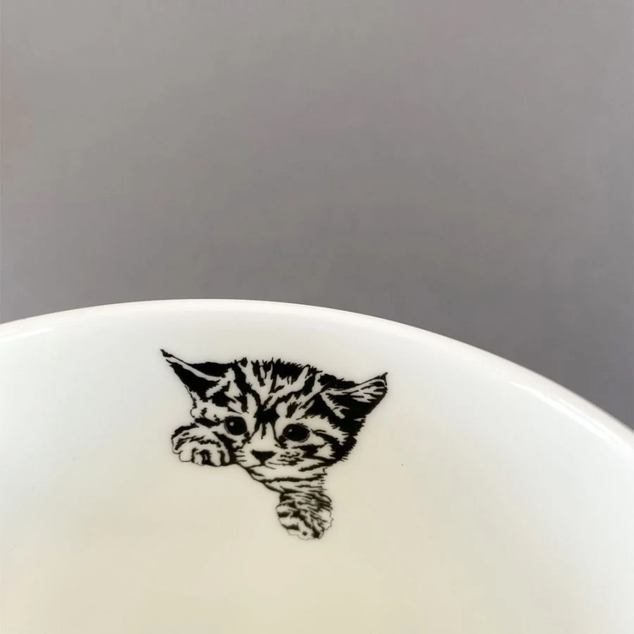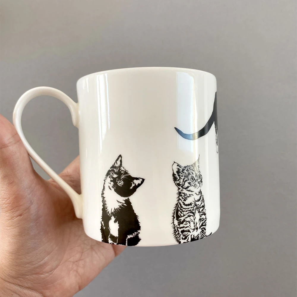 This Molly & Maud kitten Mug from Penguin Ink has been screen printed and handed decorated in Stoke on Trent. It has five kittens around the mug, in addition to a kitten peeping out from the inside of the mug. Each mug comes individually boxed in a Kraft cardboard box, therefore perfect for gift wrapping and keeping the mug safe.