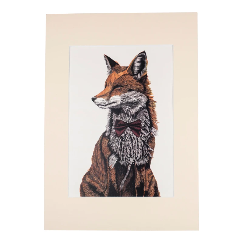 This Mr. Fox Art Print is a quirky hand printed illustration by Charley Rabbit. Professionally mounted and ready to frame. A perfect gift or stunning addition to any room.