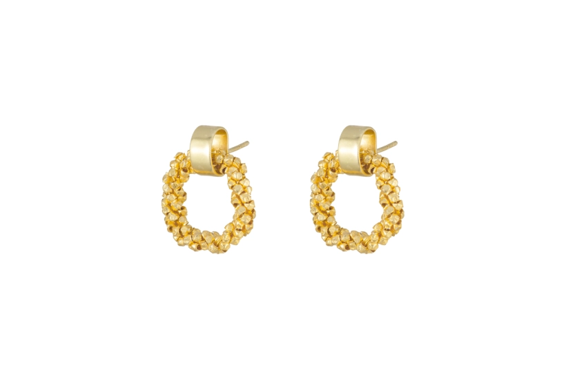 This striking new Mula Earrings from Nkuku have an elegant and stylish design. The warm gold Mula hoops are decorated with strings of intricately hand cut brass beads on a thick circle, all plated in 22 carat gold.