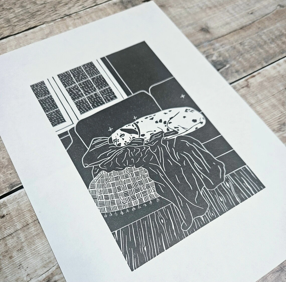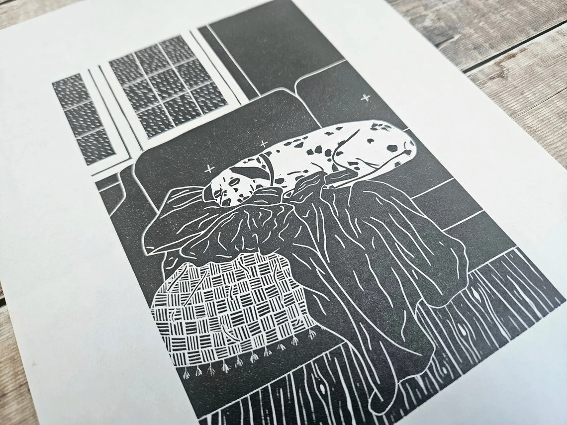 This lovely print of a Dalmation Dog not wanting to go out for a walk is titled ‘Nope’ Limited edition run of 60 prints – it comes numbered and signed in pencil.