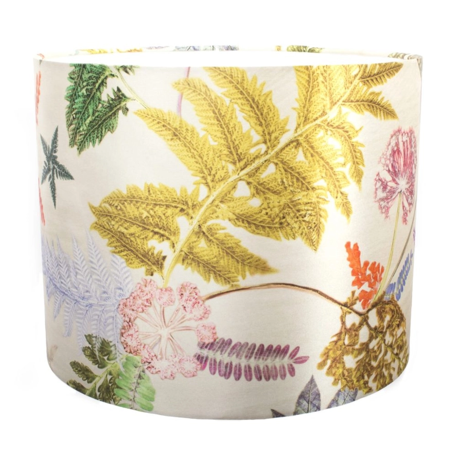 This stunning botanical inspired lampshade from Gillian Arnold is their Now That’s Something Silver and Green botanical design featuring a silver background with a mixture of pink , green and orange pressed flowers and foliage. A stunning light shade for table lamps. A unique addition to your interior lighting scheme that adds colour and warmth.