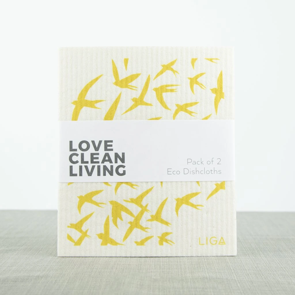Love Clean Living pack of two Swallow and Dandelion Eco Dishcloths.