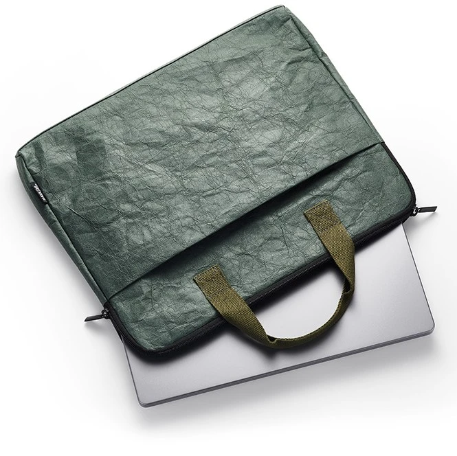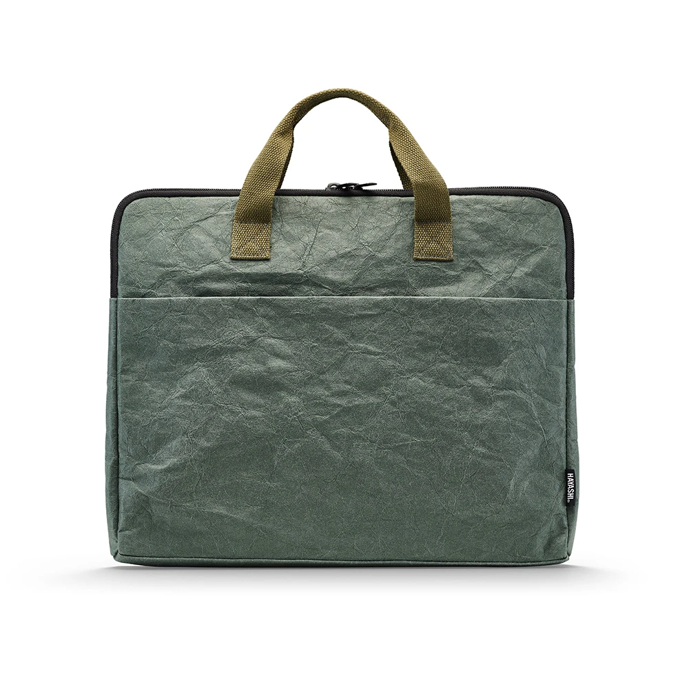 Move seamlessly from home to work and back again with the Hayashi paper laptop case in green.
