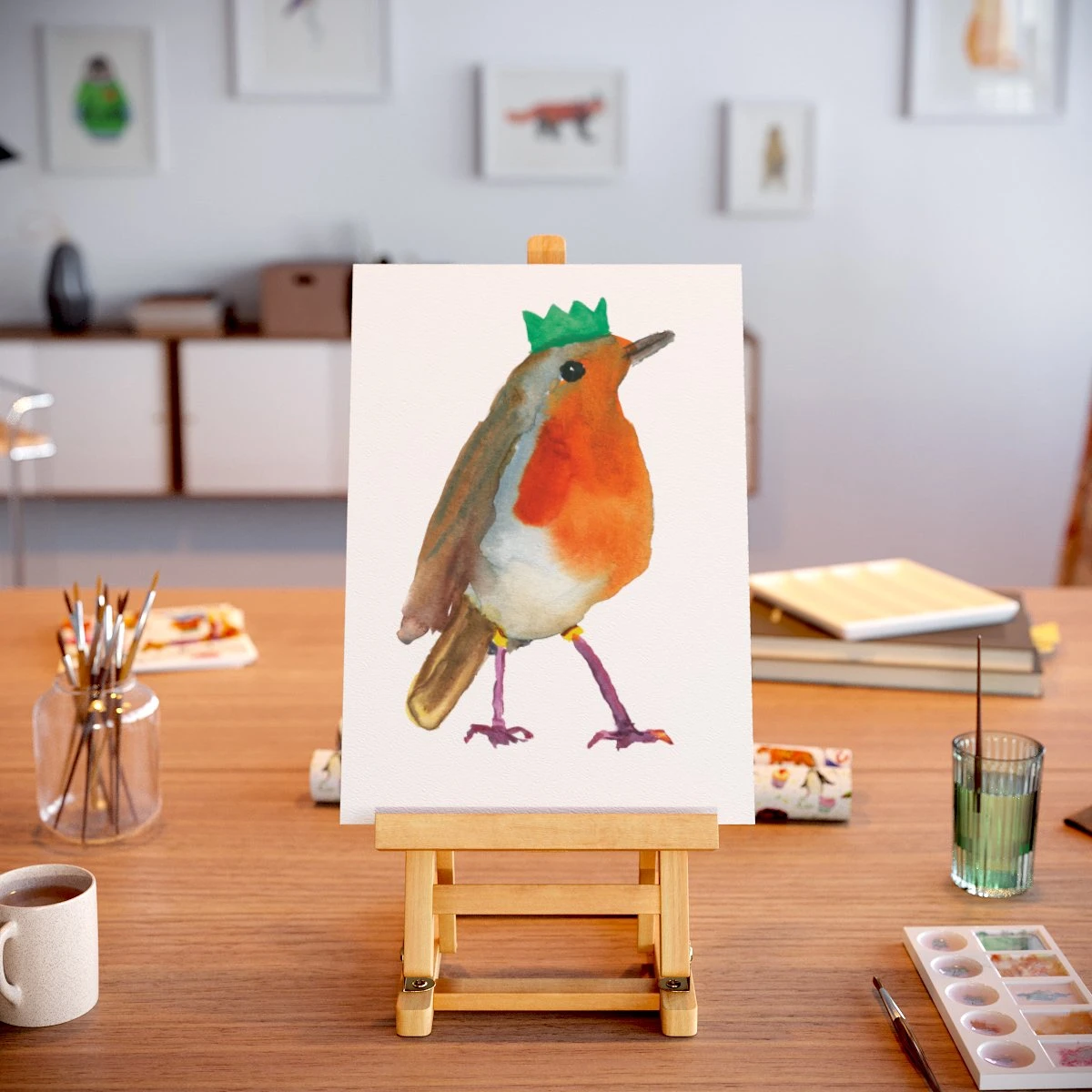 This lovely limited edition Party Robin print is by independent artist Rosie Webb. Rosie is a watercolour artist who creates her paintings in a loose and expressive way that incorporates a lightness of touch with humour. The result is lovely quirky and charming animal prints that are perfect for brightening up the home.