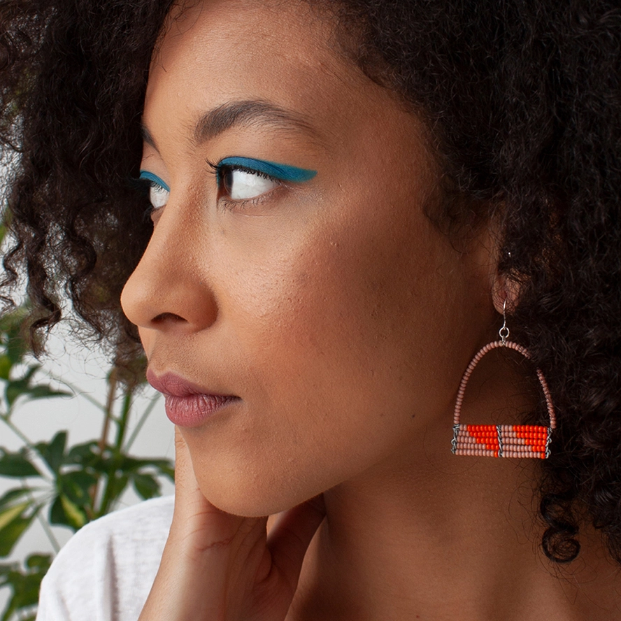 These stunning pink and orange Sera Earrings are fun and playful handmade beaded hoops. Part of a collaboration between Bohemia Design and a social enterprise beadworks in Kenya. Handcrafted in Kenya using Czech glass beads and sterling silver plated earring wire. These modern boho earrings make excellent birthday or valentines gifts. A perfect colourful addition to your Spring/Summer wardrobe offering.