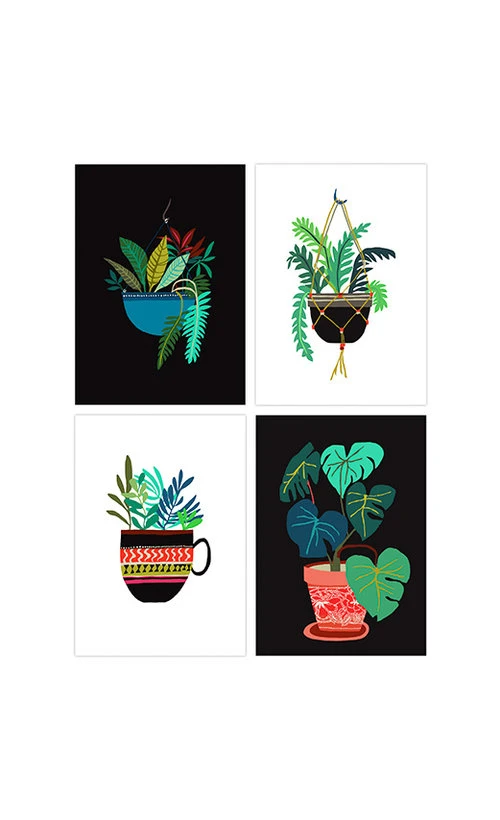 Four Pot Plant Postcards designed by artist Brie Harrison.
