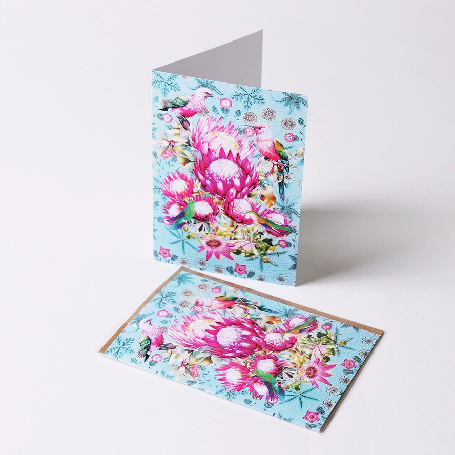 This gorgeous Protea greeting card is by talented local artist Diana Wilson. Diana creates beautifully coloured collages.