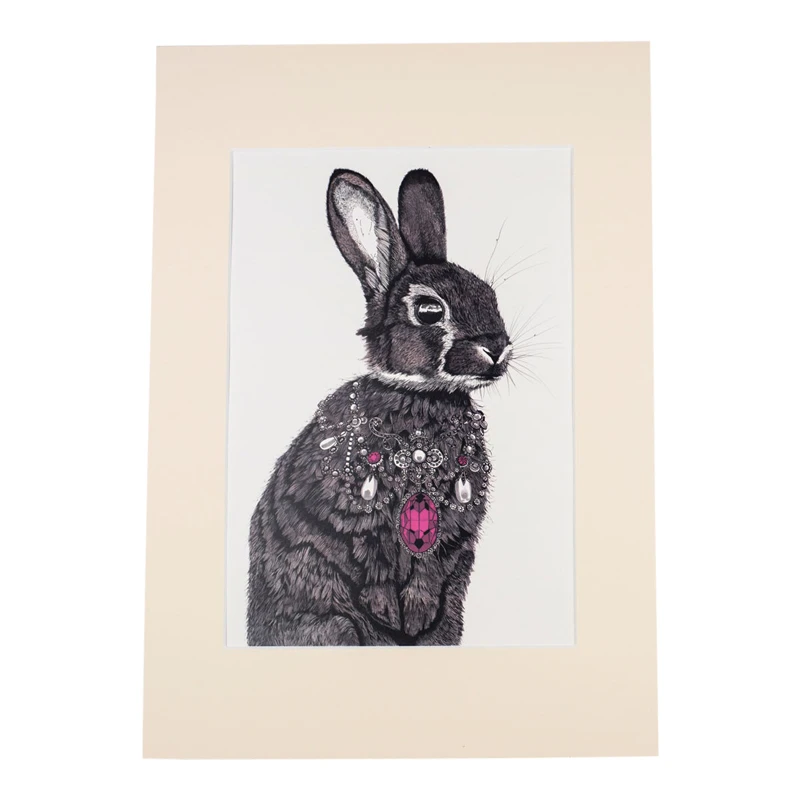 This A3 Mounted Rabbit Art Print is a quirky hand printed illustration by Charley Rabbit Illustration.