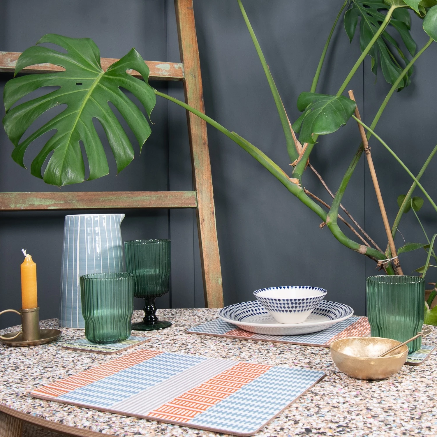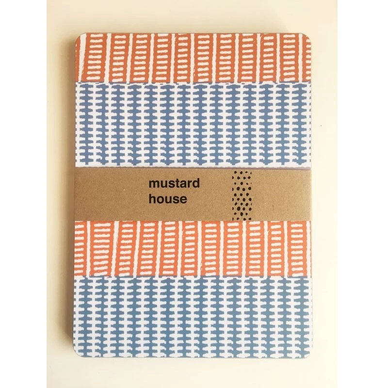 These Rafia Weave placemats in orange and blue come in a set of 4 and would make a stylish addition to your table or a great gift. There are matching coasters also available. Designed and produced in the UK for a small independent maker. The placemats have a matt finish and are backed by good quality cork.