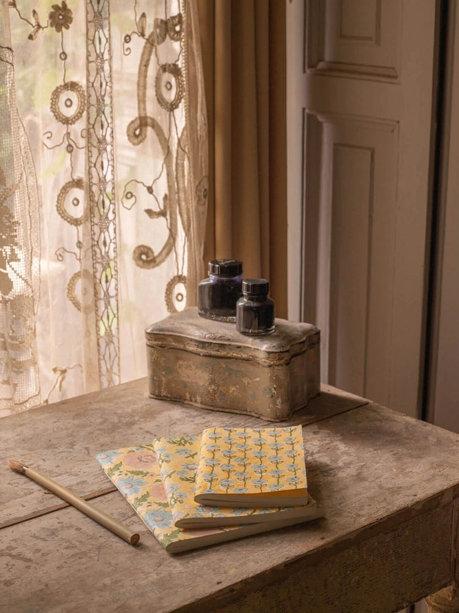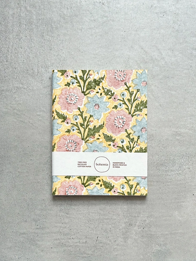 These beautiful Floribunda A5 Notebooks are made from 100% cotton paper. These notebooks from Bohemia Design have been decorated with traditional hand block printed covers in a pretty buttermilk floral design.